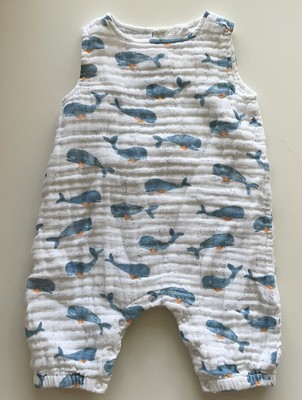 This Baby Whale Sleeveless Romper ships in 24-48 hours. SIZE GUIDE 100 Cotton. Angel Dear Whale Muslin Sleeveless Romper.